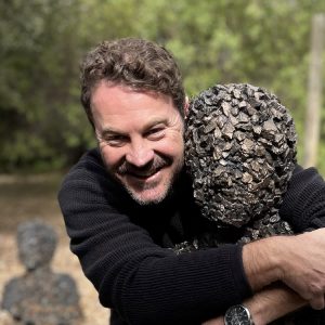 “The faster we move, the less we see the details. We are missing the basics,” says Riaan van Zyl. This philosophy lies at the heart of his artistic approach. Van Zyl hurls and pours old car oil, effectively slowing down time and capturing it through a mix of charcoal and paint on various surfaces. His static images seem to vibrate with movement, inviting viewers to pause and absorb the intricacies within.